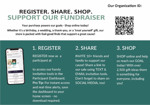 To reach our goals and make this fundraiser a success, we need everyone to do their part. Luckily, it’s super easy! See the flyer with detailed instructions on how to register online and support our goals. We appreciate all of your support and encourage you to spread the word to your friends & family, near and far! The more people who shop, the more money we can raise for our organization! Together, we can ensure our organization reaches its goal – and even surpasses it!