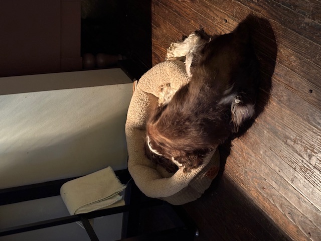 She loves sleeping on the sofa beside her foster mom and would, most likely, do well in bed at night if she finds a family who would welcome that from her. She is a champion sleeper and is also very happy to be in a comfortable dog bed.