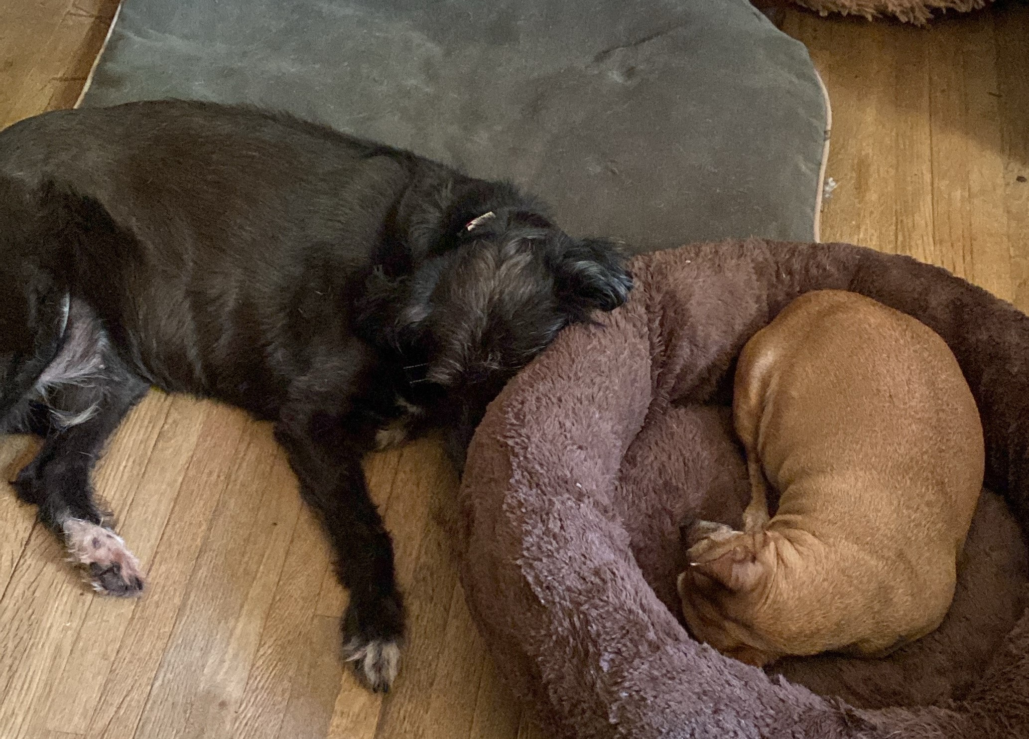 Such a sweet laid back lady who is a joy to have around! Beta enjoys being scratched and loved on, but not too much of a cuddlerš¤·āāļø or at least not with me. Chewing on bone marrow is a favorite pastime, along with wandering around the yard if it is not hot outš. She isnāt particularly attached to any specific bed, she kind of likes to bounce from one place to anotherā¦sort of like Goldie Locksš. If she is needing to go out she starts wandering around, so regular bathroom outings are definitely suggested. Beta is wonderful on a leash, slowly enjoys sniffing everything while perking up at all the sounds around and responding with a few barks that are too adorable. As for eating, she is definitely spoiled, plain dry kibble is not going to do it. So we rotate different foods mixed into her kibble. She is quite fond of chicken broth and rice with frozen mixed veggies though so she gets that several times a week. Shredded boiled chicken and plain yogurt is another favorite. It has been a wonderful experience watching her come out of her shell, and Iām sure she has only begun that personality development. Beta would make anyone a fabulous companion, excellent with dogs of all sizes and cats are of zero interest to her, she just passes them by or lays with them. I canāt say enough of how much of a joy she is to have around.
