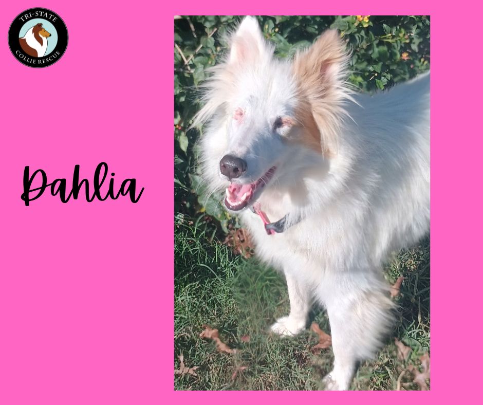Dahlia has been working very hard with her incredible Foster Mama to learn about gentle touch and direction. Her progress has been nothing short of amazing.   In her own words, here is what her Foster Mama has to say about sweet Dahla: “Dahlia is one special girl despite her disabilities. She is a very sweet and loving dog to all humans she meets. She is very smart also, it’s just amazing to watch her learn her way about the house and yard once she has memory of the paths to take. Dahlia has a clear voice to let you know when she needs to go outside to potty. She will also let you the smell of food she wants to share and if she feels alone and lost in her dark world she will bark to say, HEY, WHERE ARE MY HUMANS FURRY PALS? She loves to play with her fur pals here, so a playful pup full of energy would really be great for her. Dahlia loves her stuffed toys and chew toys just like any other dog and those cuddles on the sofa. She rests best knowing that her human and furry friends are near. Whether you are experienced or not with a special needs dog, Dahlia is well worth considering for a great companion.”   If you have room in your heart to take Dahlia into your home to give her a chance at the life she deserves please fill out our adoption application today! Don’t wait! Please visit https://tristatecollierescue.org/how-to-adopt/ to complete the adoption application.
