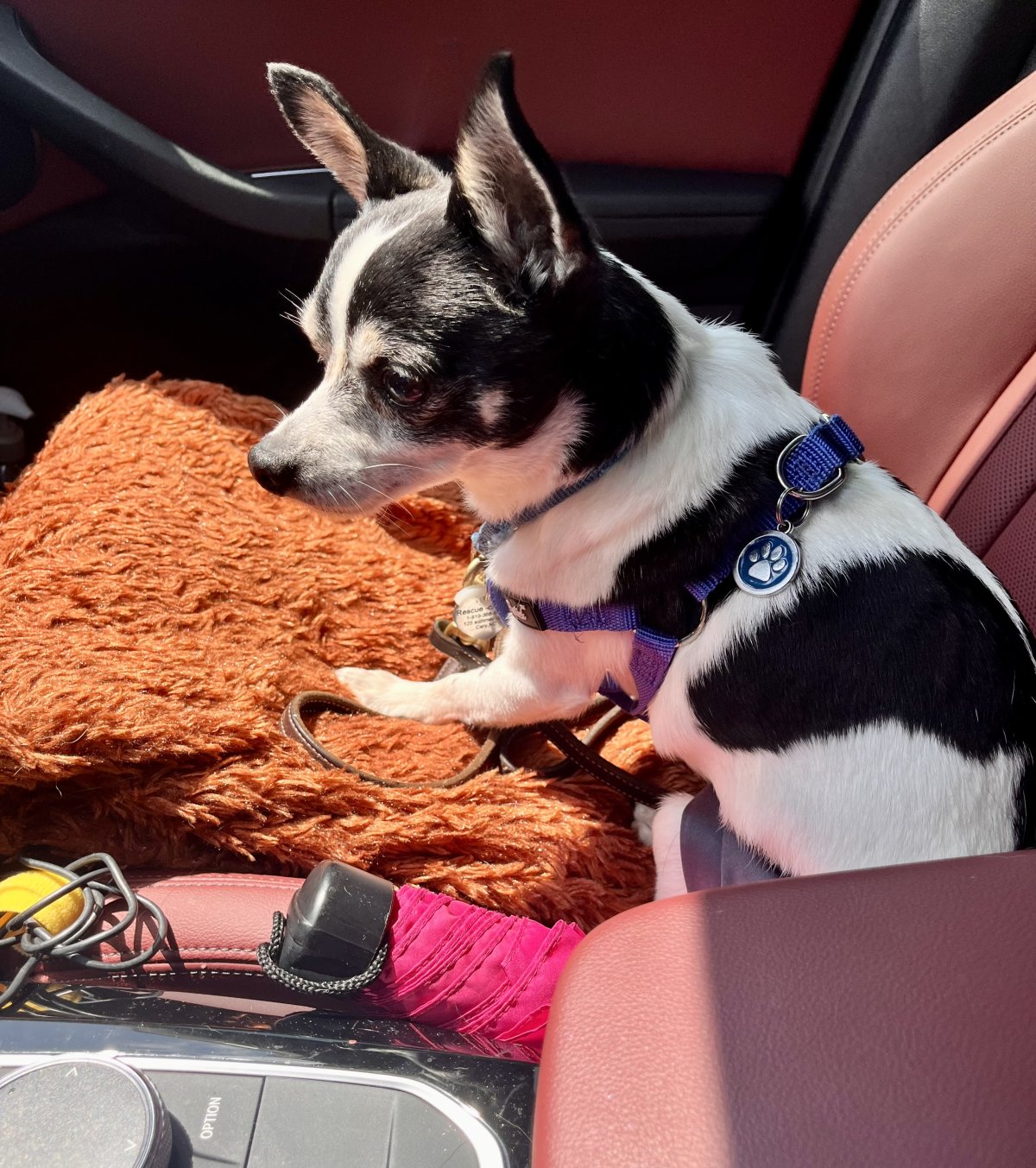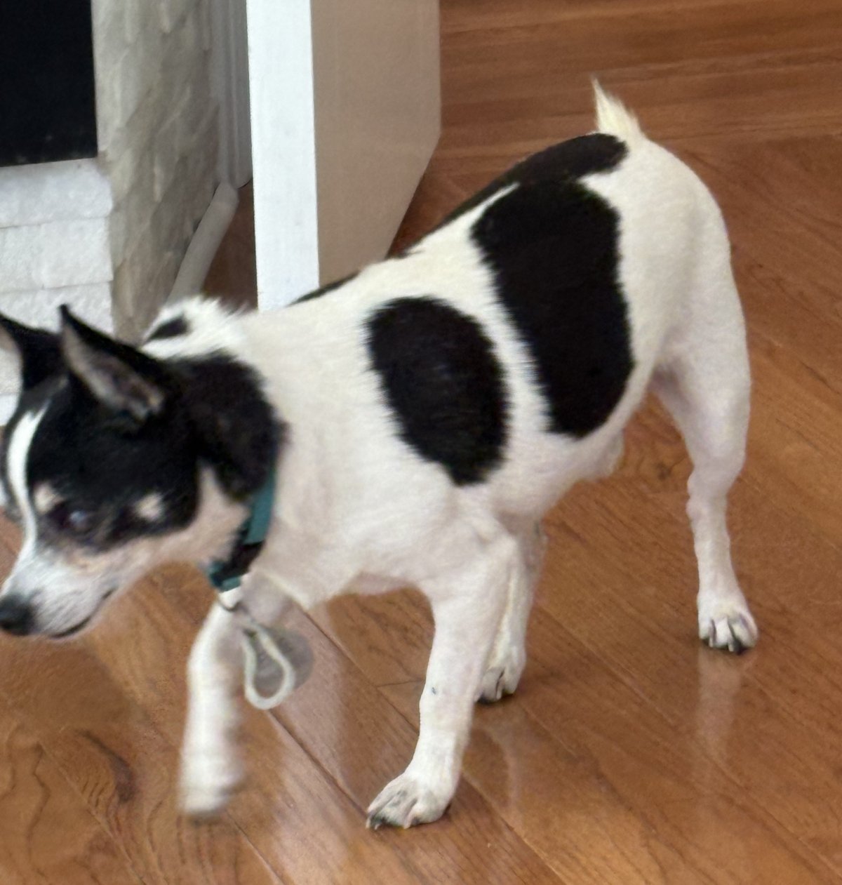 Gilly McGillster is a black and white Chihuahua between 8-10 years old and weighs 9 lbs. He was found as a stray and landed in a county shelter. Gilly is blind. Gilly is neutered and fully vaccinated and heartworm (-). He loves all dogs and all people and kids too. Gilly loves to be held and he loves squeaky toys most of all. He walks great on a leash and loves rides in the car too. He is so sweet and fun and goes crazy for treats and loves getting attention. He is in a foster home in Cary, NC.