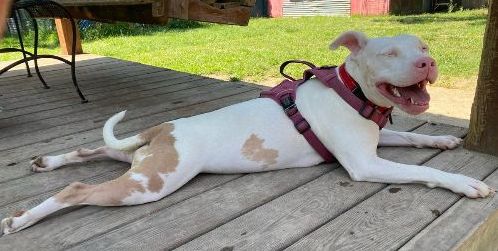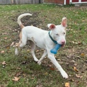 Hope is doing well, is walking good on a leash, loves going to the vet because everyone loves her there and she gets lots of pets. Hope likes to meet new people. She is really great about going to her kennel when asked. Easily goes into her kennel when her foster mom leaves. Hope loves to snuggle at night and likes to put her head in my lap when I’m reading. She likes to cuddle and sleeps right by her foster mother. She has a lot of energy, likes to play with toys, and run outside with her foster siblings of all sizes and breeds. Her favorite games are chase and tug a war.