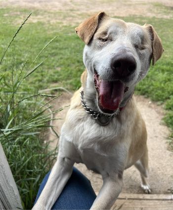 Stevie is a 6-ish year old lab type mix. She weighs 44 pounds.
